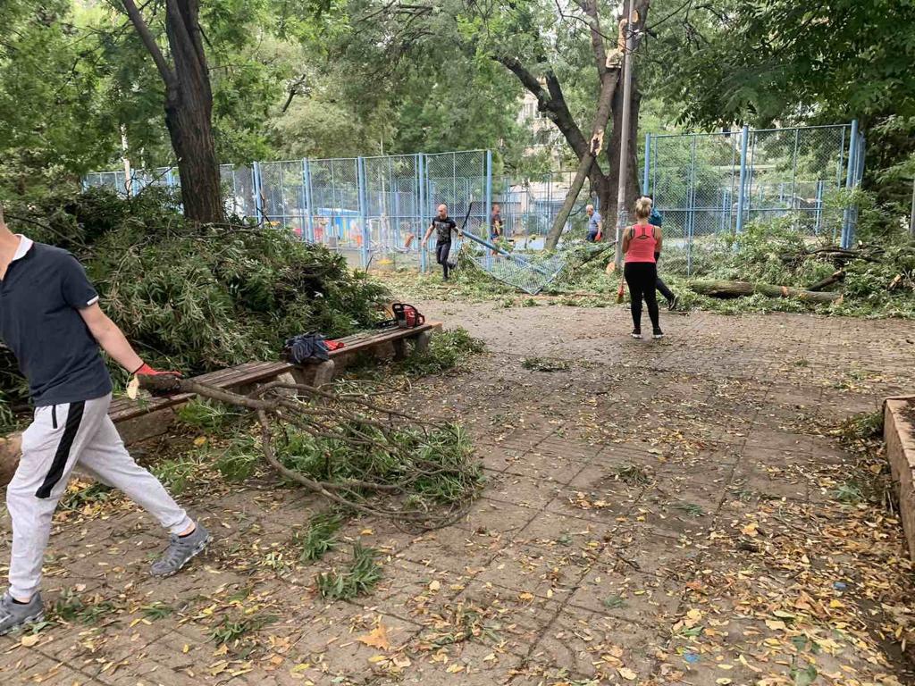 "Голямото разчистване" беляза неделния ден на бургазлии вчера. Общинари и доброволци помагаха за премахване на щетите от стихията, която се разрази в събота следобед и паникьоса града. Родители разчистваха клони и мазилки от дворовете на детските градини. Кметът на Бургас Димитър Николов следеше лично организацията и успокояваше пострадалите.