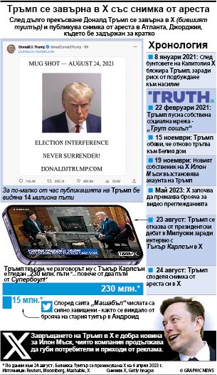 Чунг добави, че за последните 3 седмици са събрани близо 20 милиона долара - период, приблизително съвпадащ с повдигането на обвинения срещу Тръмп заради твърденията му, че победата на изборите през 2020 г. му е била отнета, отбелязва Ройтерс.
