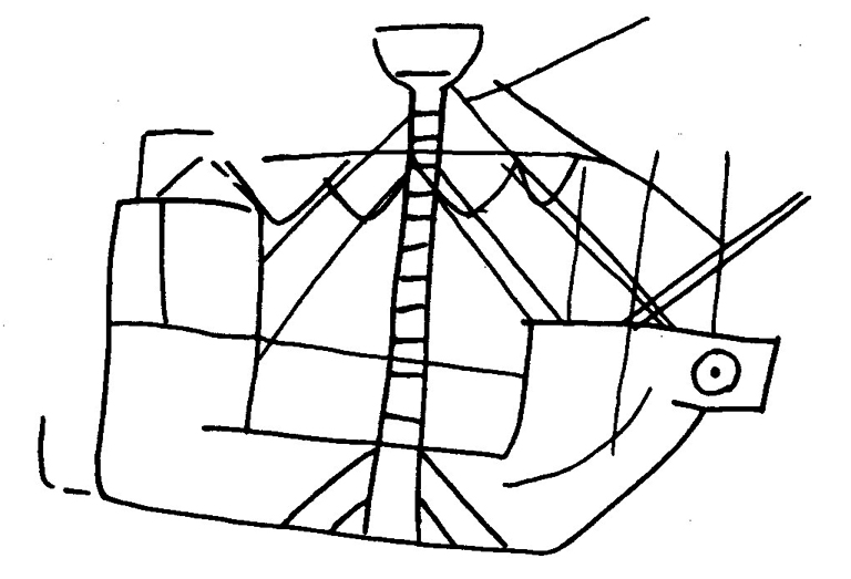 Изображението се оказа на “кога” - военен плавателен съд със западноевропейска конструкция от ХIV в. Много характерни при нея са предната и задната надстройка (кастели), играели роля на бойни кули в морските сражения. Когата е изобретение на северните морета, но бързо намира разпространение и в Средиземно море. Особено добре се възприела тя от италианските републики Венеция и Генуа. През 1304 г. флорентинският хронист Джовани Валяни пише: “Дойдоха хора от Гаскония с техните кораби, които на байонски се наричат “коги”. И започнаха генуезците, венецианците и каталонците да се обслужват също с коги.”