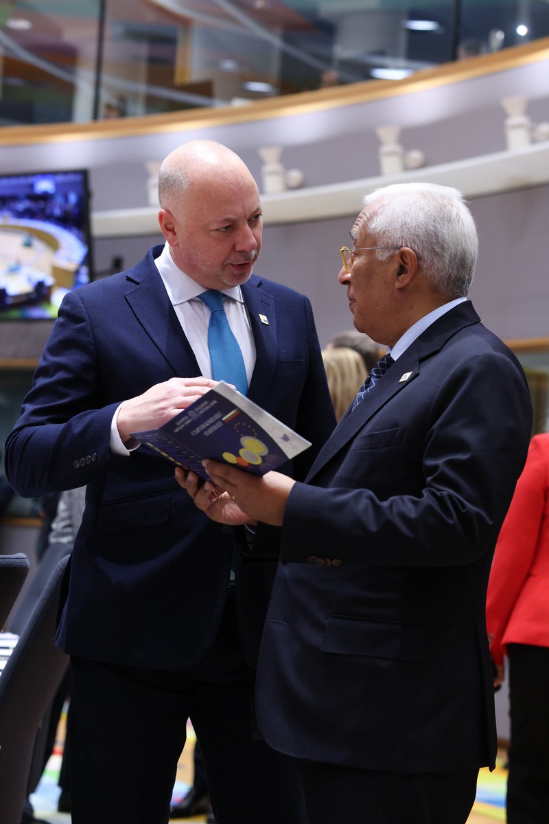 Преди началото на заседанието на Европейския съвет в белгийската столица премиерът Желязков разговаря също с председателя на Европейския парламент Роберта Мецола и с председателя на Европейския съвет Антонио Коща. На тримата министър-председателят подари серията български евромонети и благодари за последователната подкрепа на европейските институции в процеса на присъединяване на страната ни към еврозоната, съобщиха от правителствената информационна служба.