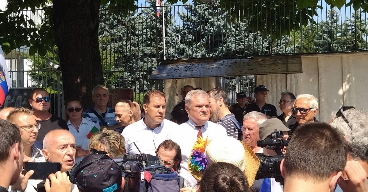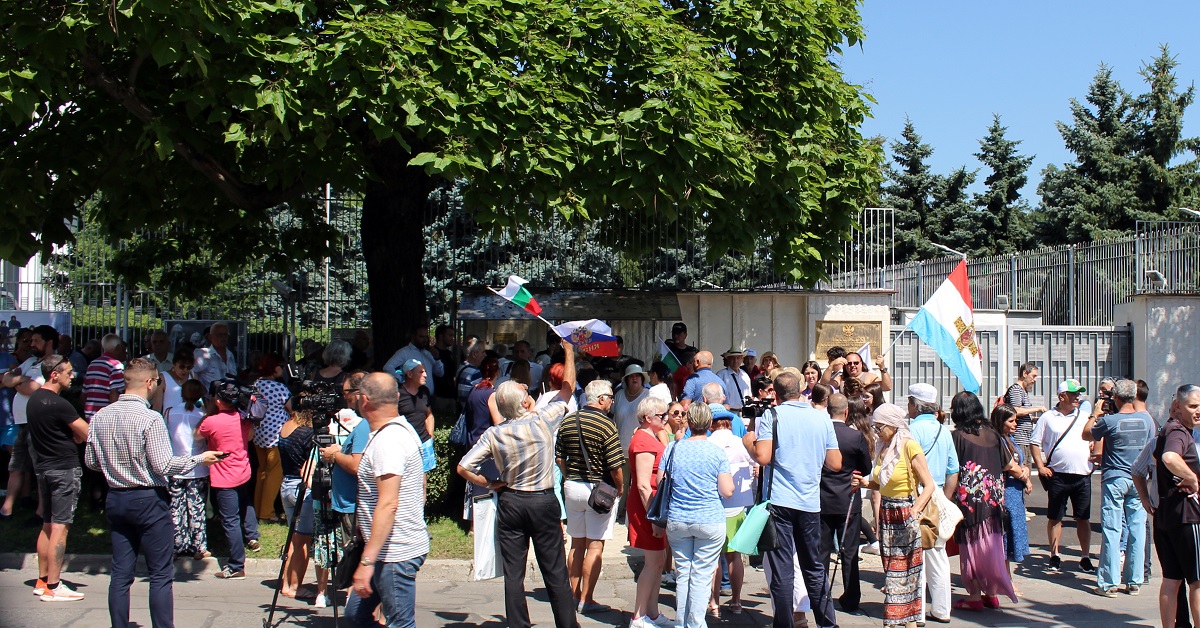 По инициатива на АБВ пред руското посолство в София днес се събра ръководството и активът на партията, както и стотици граждани, за да обявят подкрепата си за изгонените от България представители на дипломатическата мисия на Руската Федерация у нас.