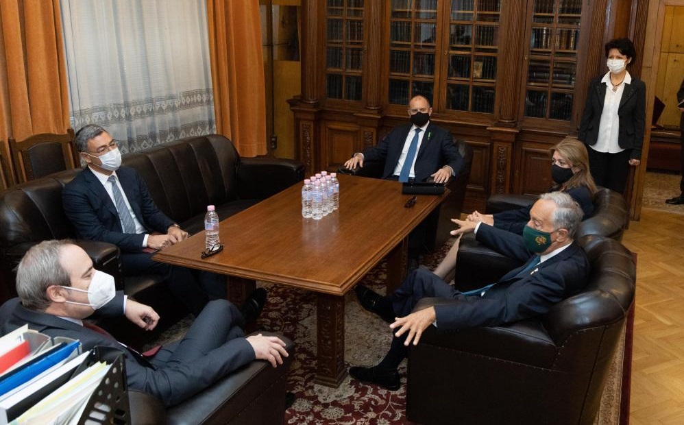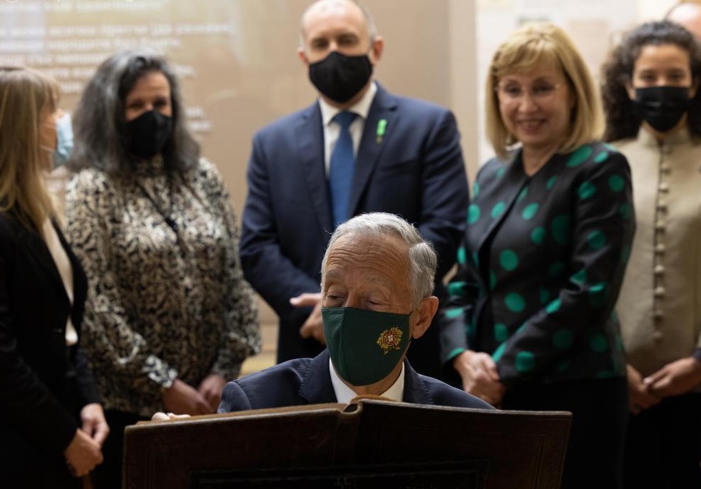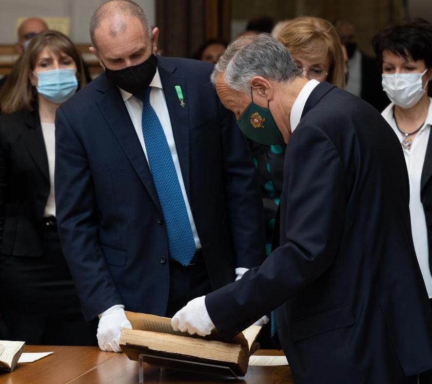По-рано през деня Румен Радeв и Марсело Ребело де Соуза посетиха Националната библиотека „Св. Св. Кирил и Методий“. Двамата разгледаха експозицията „Португалия в ръкописите и старите книги на Националната библиотека“, съдържаща три съчинения, съхранявани в Библиотеката: "Джихан-нюма" (Огледало на света) от 1732 г. на автора Кятиб Челеби, "Тарих ел-Хинд ел-Гарби ел-мусемма би хадит-и нев" (История на Западните Индии) от 1730 г. и "Нузхат ал-муштак фи хтирак ал-афак" (Книга за развлечение на копнеещия да преброди страните) – ръкопис от 1556 г. на Мухаммад б. Мухаммад ал-Идриси. Част от представената експозиция бе и първото издание на Нюрнбергска хроника от Хертман Шедел, отпечатана на 12 юли 1493 г. от Антон Кобергер.
