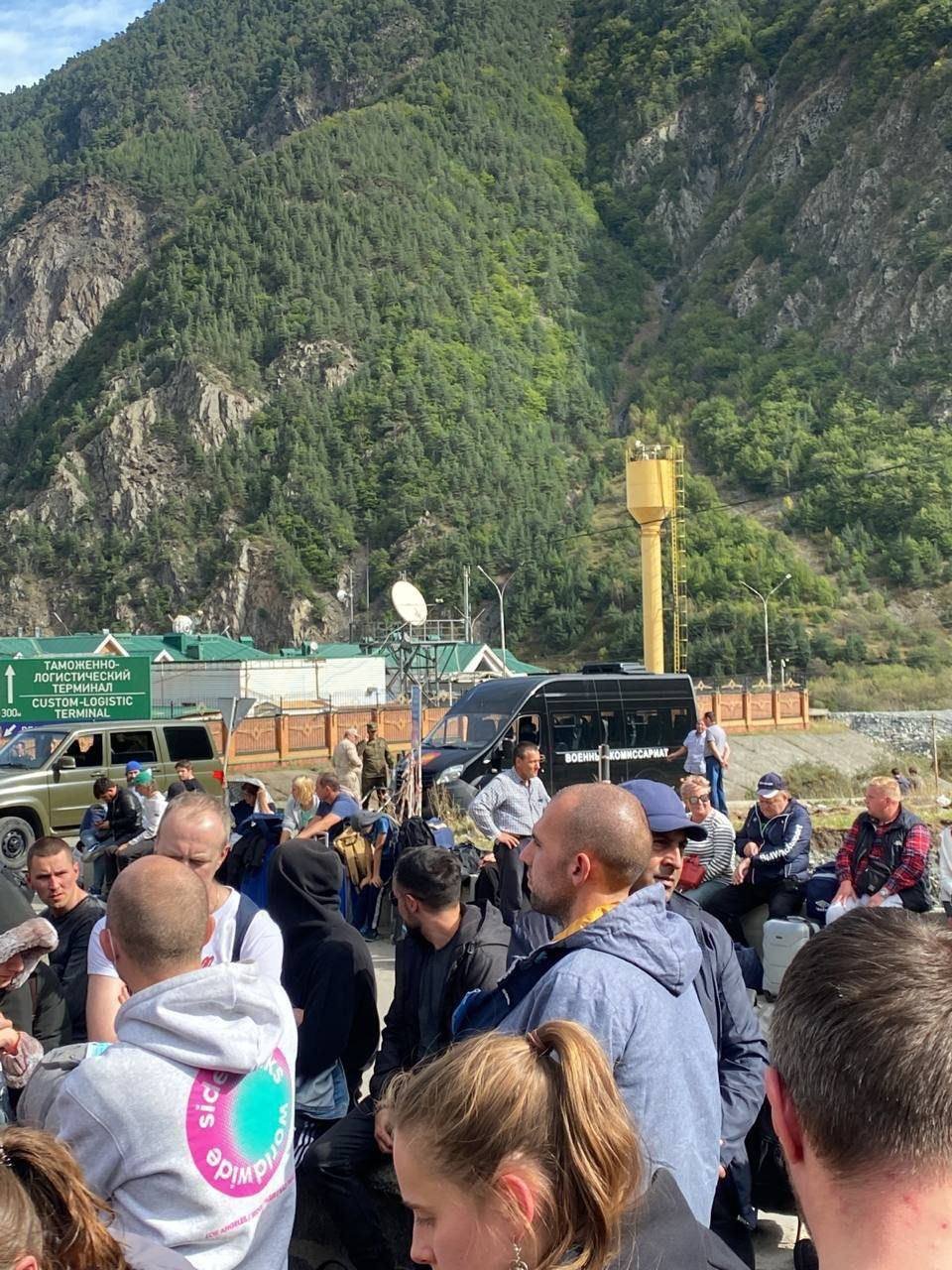 Александър Камисенцев, напуснал дома си в Саратов и тръгнал за Грузия, описа каква е картината от руската страна на границата. "Всичко това е много страшно - сълзи, викове, огромен брой хора. Усеща се, че правителството не знае как да го организира. Изглежда, че искат да затворят границата, но в същото време се страхуват, че може да последват протести, и оставят хората да си тръгнат", заяви той пред АП. Той каза, че е решил да напусне страната в последния момент, "защото нито ще убивам моите украински братя, нито ще влизам в затвора“.