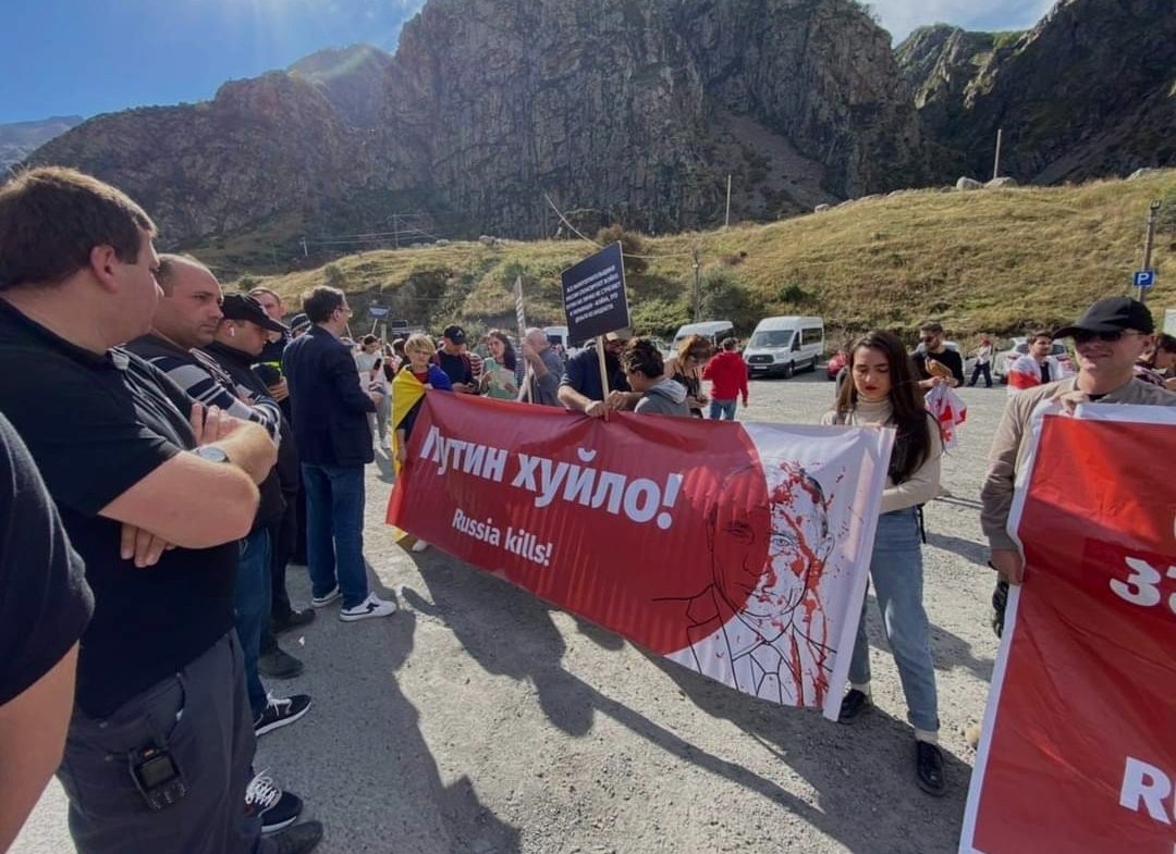 Вчера руснаците на границата ги посрещаха протестиращи, носещи грузински и украински знамена и плакати с надписи като "Русия убива". Гига Лемонджава от политическата партия "Дроа!", която организира протеста, заяви, че евакуираните застрашават сигурността и икономиката на Грузия. Една от протестиращите, Елена Хощария, написа в Туитър: "Организирахме днес протест на границата, за да знаят идващите руснаци какво мислим за техния "руски свят".