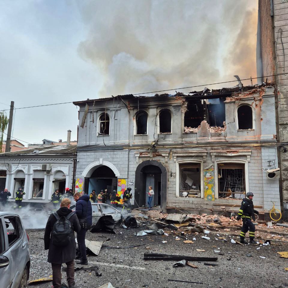Кметът Игор Терехов съобщи, че ударът е причинил пожар, а вторият етаж на сградата се е срутил напълно. Шест околни сгради също са пострадали - предимно магазини, офиси и бизнес помещения. Изгорели са цивилни автомобили.
