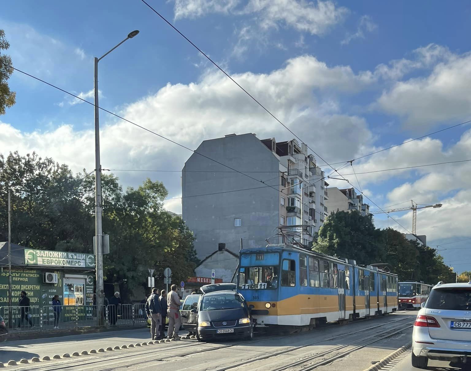 Минути след 9 ч. тази сутрин автомобил навлезе на релсите пред преминаващ трамвай № 11 на столичния бул. "Константин Величков".