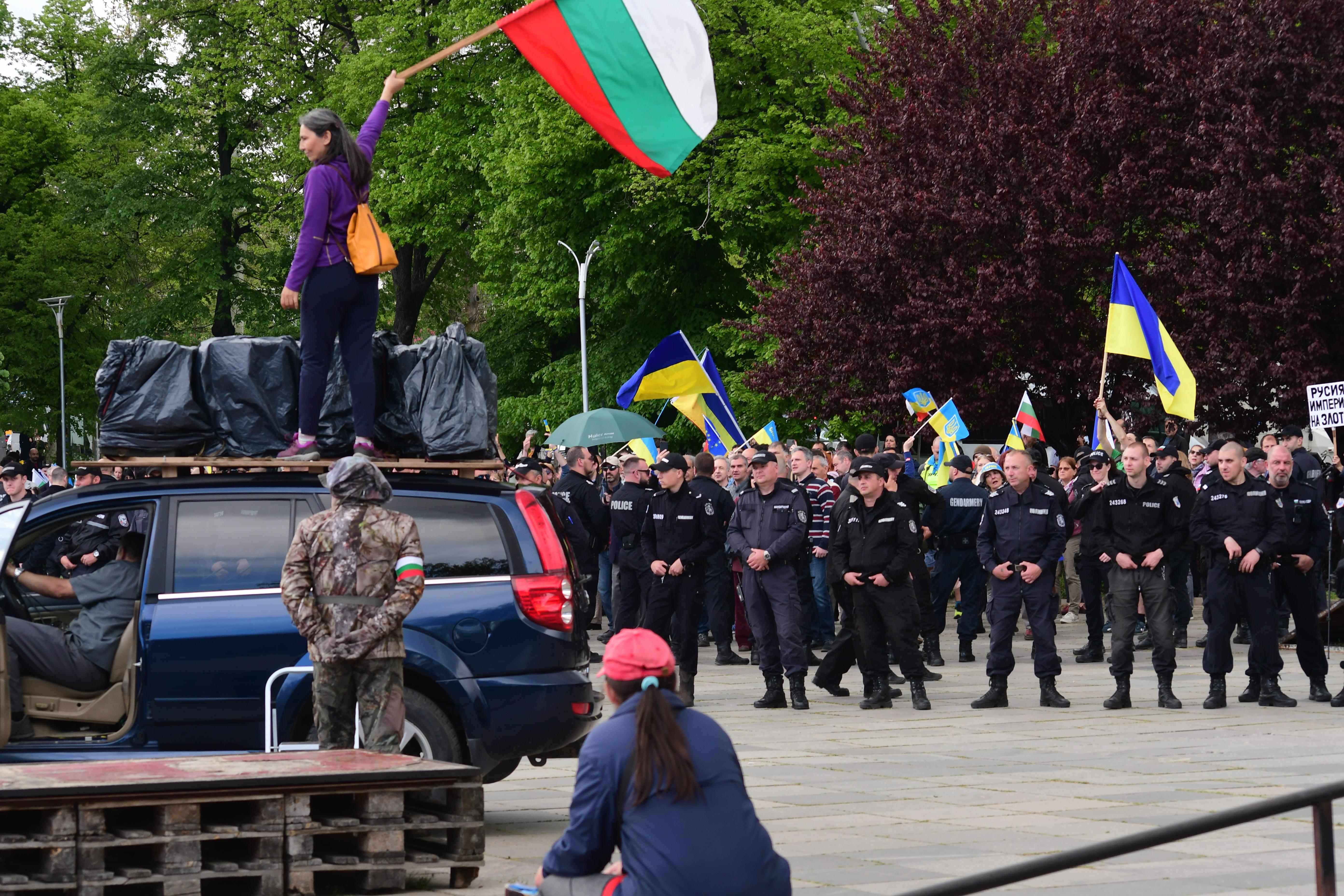 До сблъсъци се стигна при опит паметникът на Съветската армия да бъде опакован със знамената на България и Украйна. Целта на акцията беше да покаже подкрепа към Украйна.