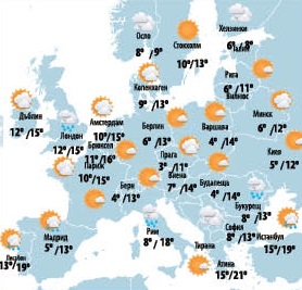 Дъждове и силни ветрове над Португалия и над Северна Испания. Над Дания и Прибалтийските страни валежите ще продължават. Валежи се очакват над островите от Западното Средиземноморие.