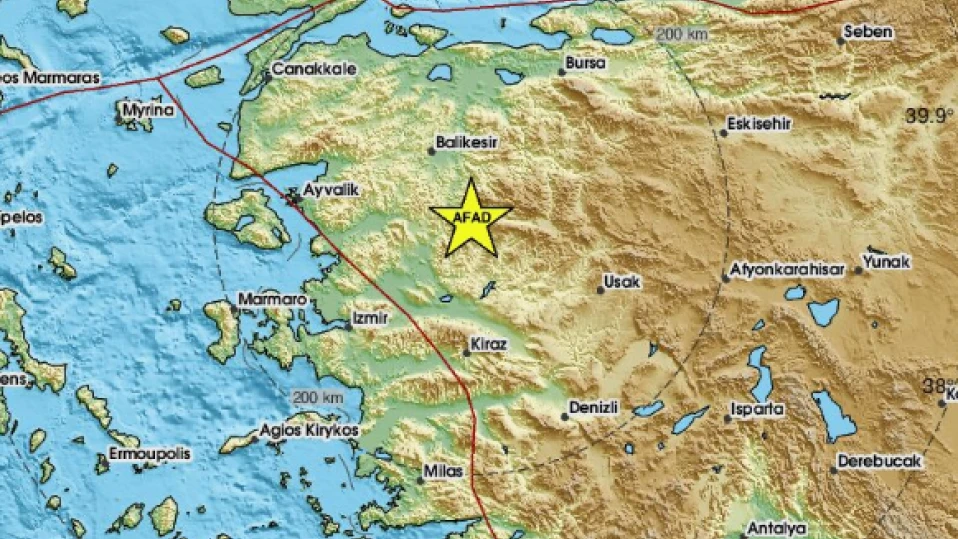 Трусът е регстриран на 64 км югоизточно от Балъкесир, Турция, на 12 км югоизточно от Синдърги, Турция, на дълбочина 11 км.