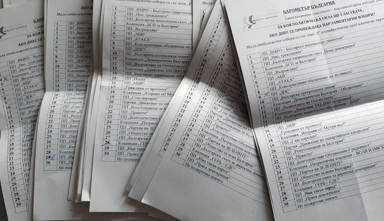 Резултатите от проведената симулация показаха, че ГЕРБ все по-категорично мобилизира своя електорат и печели гласовете на 33% от участниците. БСП остава на второ място, но изостава все повече с 20% подкрепа. Продължаващите процеси на разделение и разпад в столетницата водят до отлива на избиратели към тях. Забелязва се и преминаването на знакови фигури, свързани с БСП към избирателните списъци на други формации, което също води до преразпределение на избиратели. ДПС могат да разчитат на безусловната подкрепа на традиционния си електорат – 9,5%.