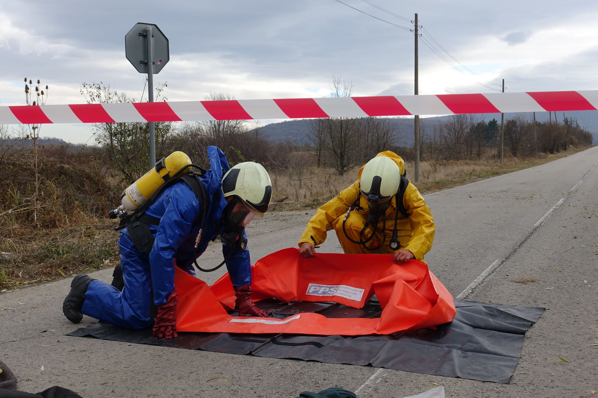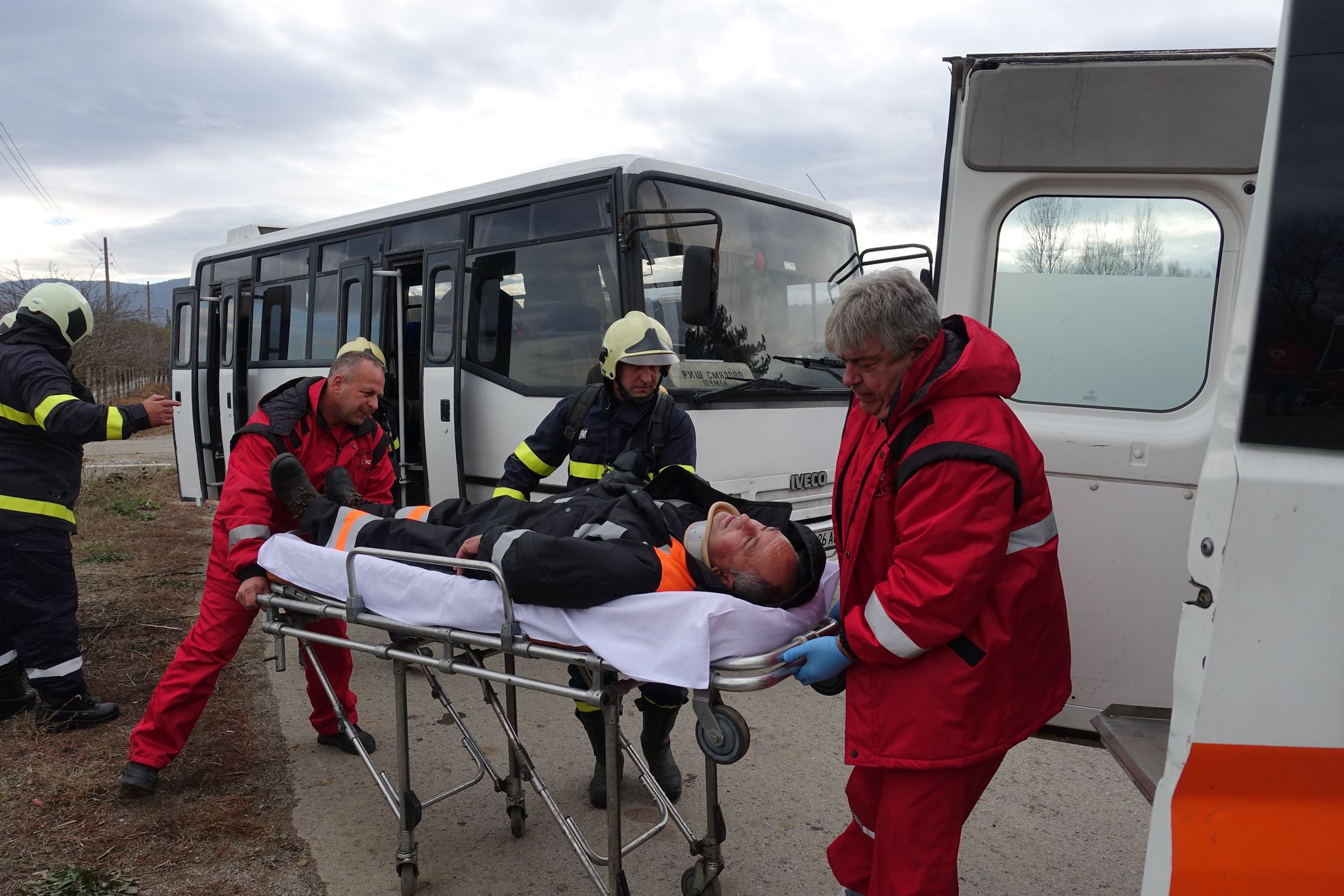 Участниците разиграха и се справиха с изключително тежък инцидент. При удара цистерната се спукала и част от киселината се разляла на пътя. В пълния автобус пък имало трима тежко ранени и още 9 с леки травми.