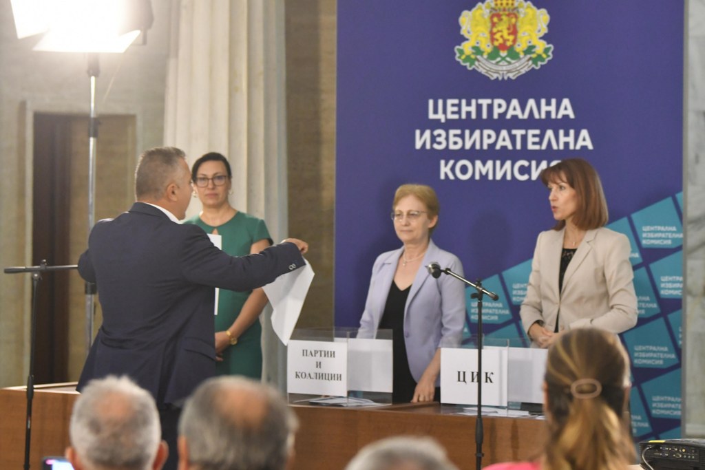 Юлиан Ангелов от ВМРО организира протестна акция по време на тегленето на жребия за номерата на партиите и коалициите в бюлетината за вота на 2 октомври.