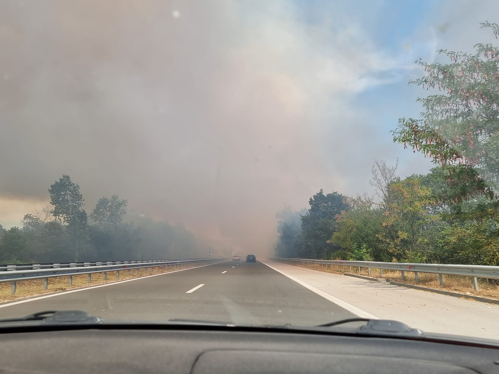Автомагистрала "Хемус" в участъка от с. Слънчево до Варна бе отворена за движение малко след 8 ч сутринта след напрегната битка с голям пожар. Той лумна в ранния следобед в неделя от двете страни на пътните платна. Заради задимяването и нулевата видимост магистралата бе затворена и трафикът бе отклонен по стария път София-Варна. Пожарът бе локализиран късно вечерта, а цяла нощ огнеборци и военни гасиха малки огнища и разчистваха пътя от паднали овъглени дървета.