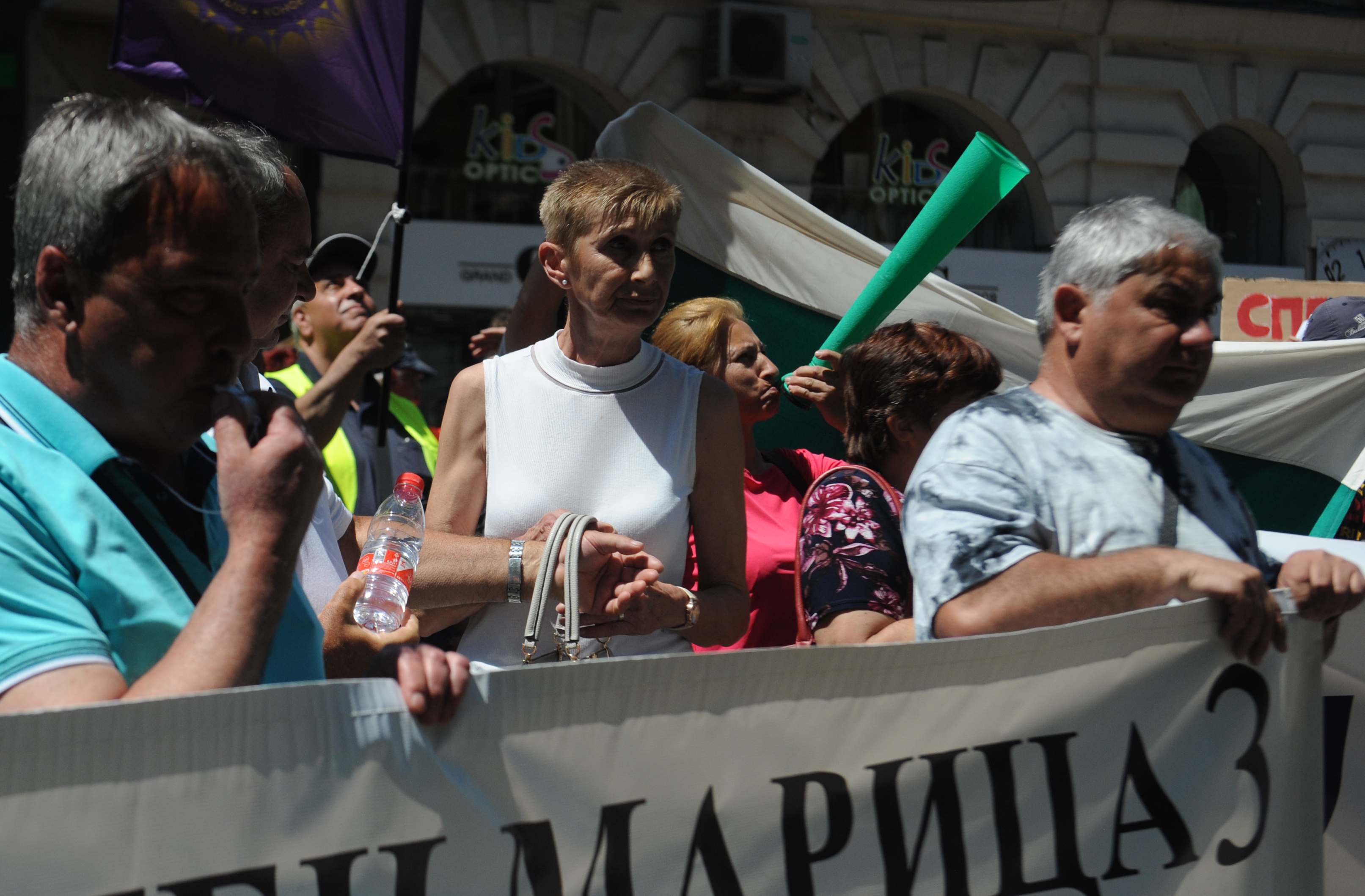 Служители на затворената ТЕЦ "Марица 3" в Димитровград блокираха центъра на София, за да протестират с искане за незабавно отваряне на централата. Те вдигат плакати с надписи "Днес зелен режим, утре режим на тока", "Не убивайте енергетиката", "Зелена операция ликвидира българската енергетика". Днешната акция е под наслов "Не убивайте българската енергетика! Съхранете българската енергийна независимост!".