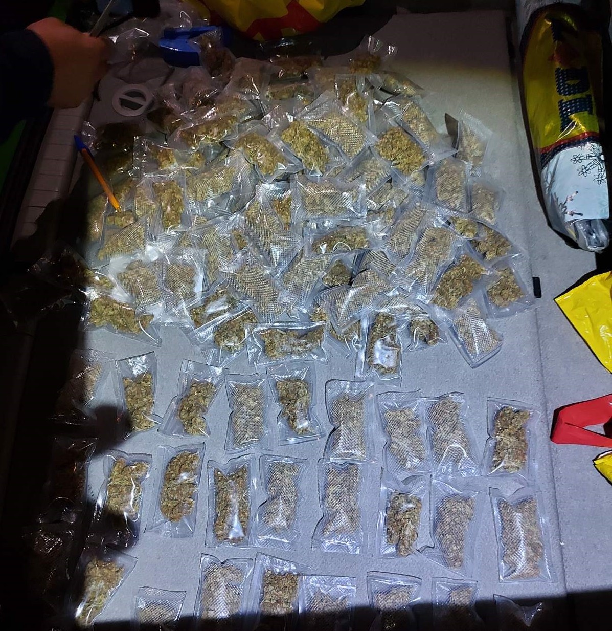 В хода на проверката, в колата униформените намерили и иззели множество различни по големина пликове с растителна маса и бяло прахообразно вещество - почти килограм марихуана и 44 грама амфетамин, съобщават от вътрешното министерство.
