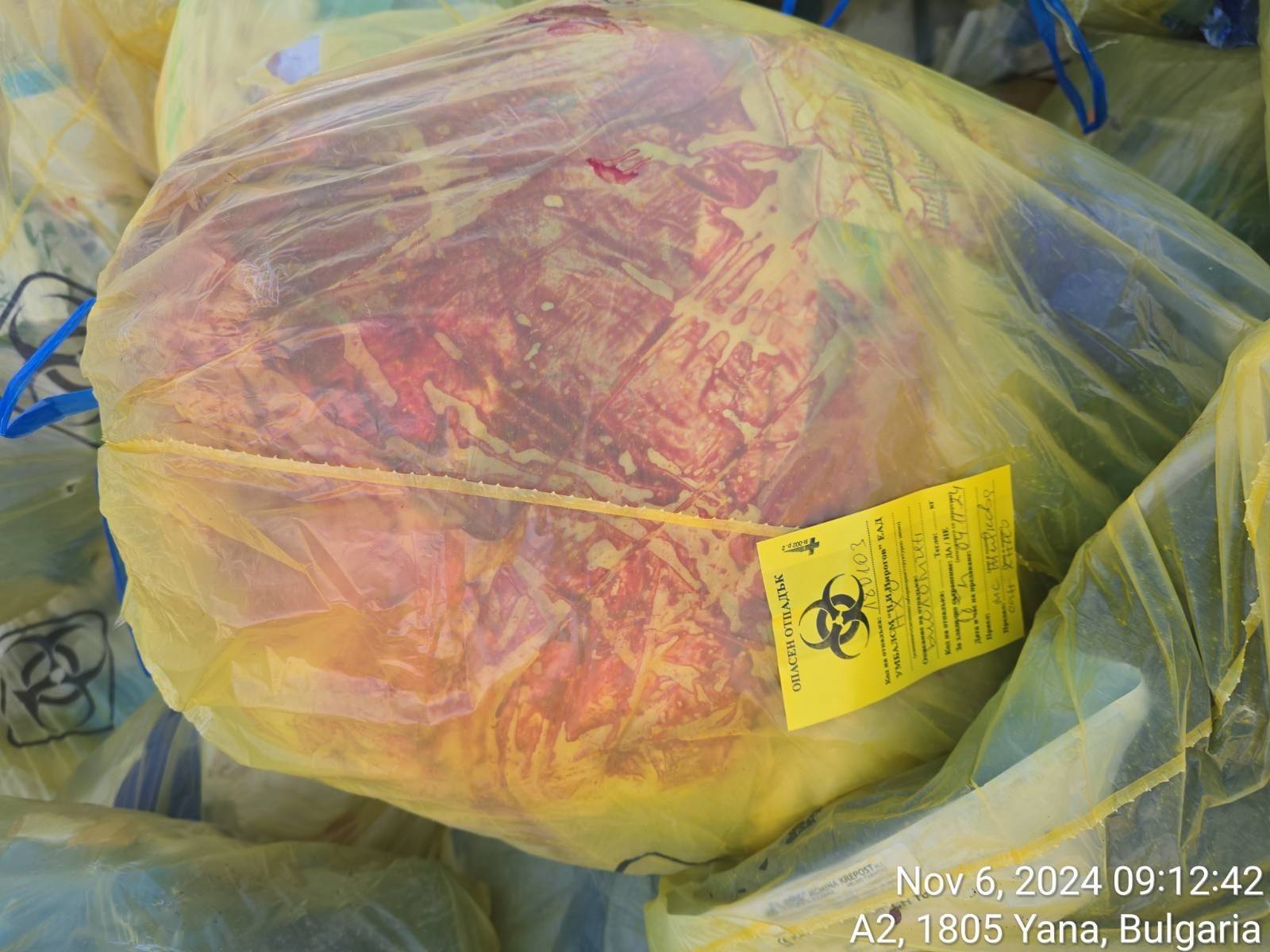 Днес в инсталацията за механично-биологично третиране са постъпили пликове, които са ясно обозначени като опасни, инфекциозни болнични отпадъци, както и немаркирани или смесени с битовия отпадък.