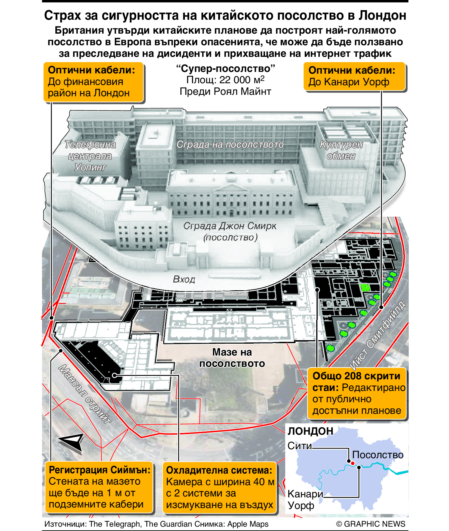 Британското правителство даде одобрение на Китай да построи в Лондон ново посолство, което, когато бъде завършено, ще стане най-голямото китайско посолство в Европа. Разрешението беше дадено с надеждата, че това ще подобри отношенията на Лондон с Пекин, въпреки предупрежденията на британски и американски политици, че новото посолство може да бъде използвано като база за шпионаж, предаде Ройтерс.
