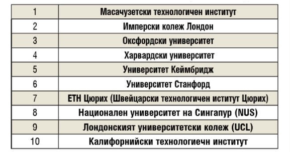 В общата класация за тринадесета поредна година MIT е първенец, въпреки че две трети от класираните университети в Съединените щати слизат надолу през последната година. За сметка на това Imperial College London се изкачва с четири места и заема 2-ро място; Университетът в Оксфорд и Харвардският университет остават съответно на 3-то и 4-то място. Университетът в Кеймбридж допълва първите пет.