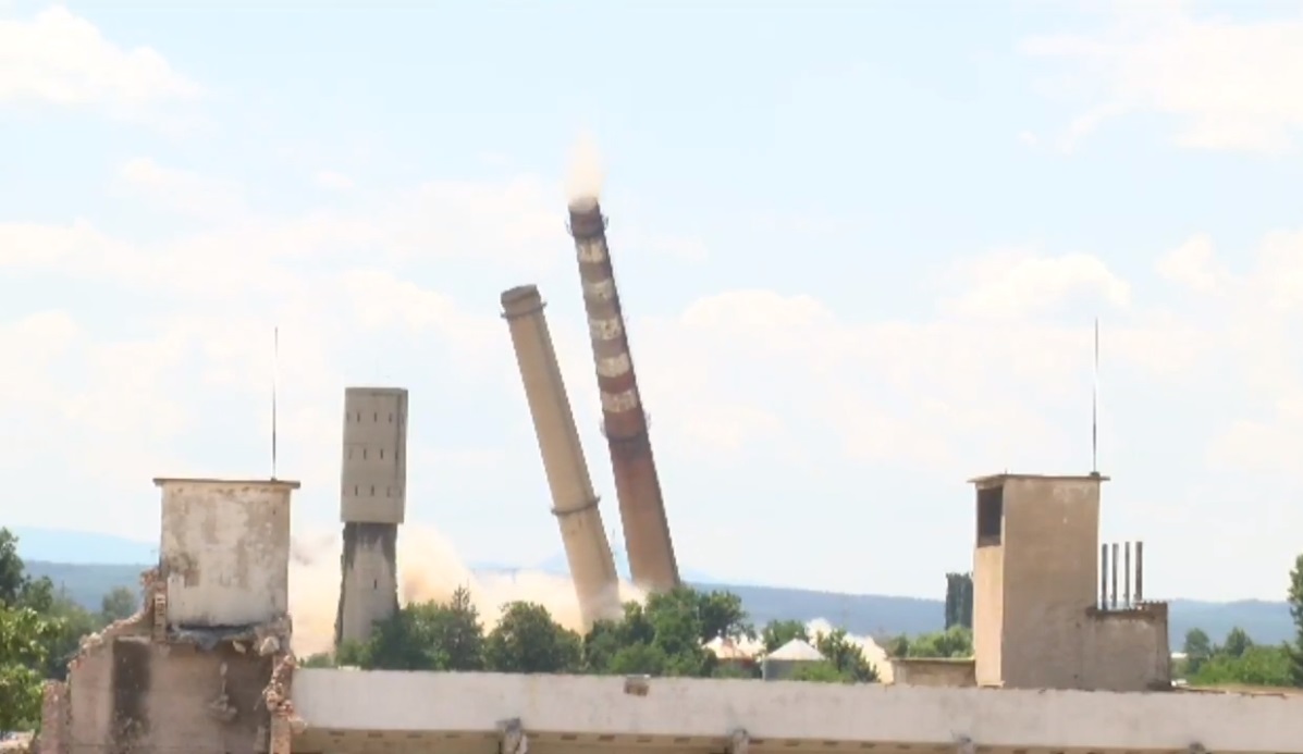По искане на собствениците с нарочна заповед днес бяха съборени двата комина на площадката на бившия ТЕЦ.