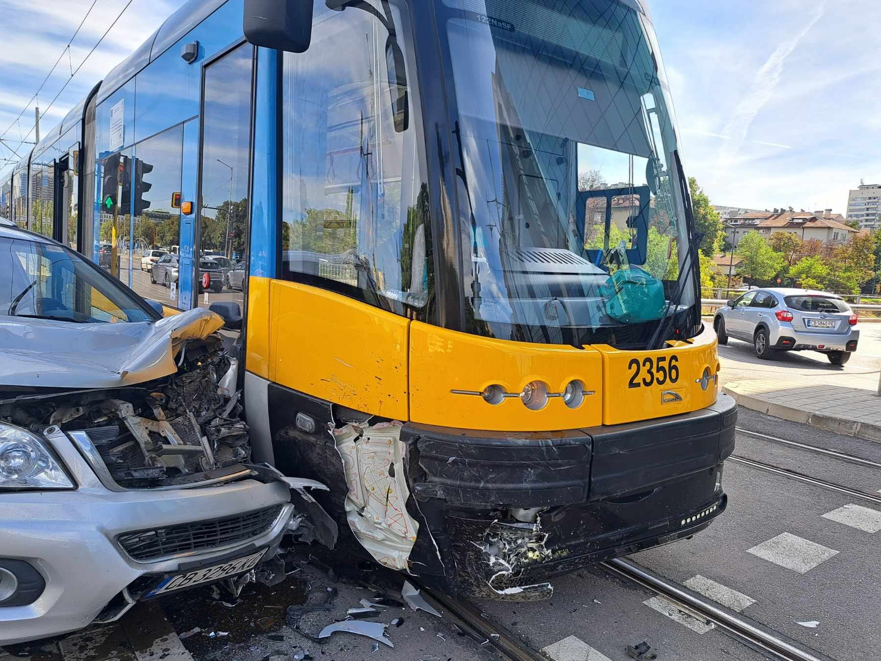 Трамвай и лек автомобил се сблъскаха по обяд в центъра на София.