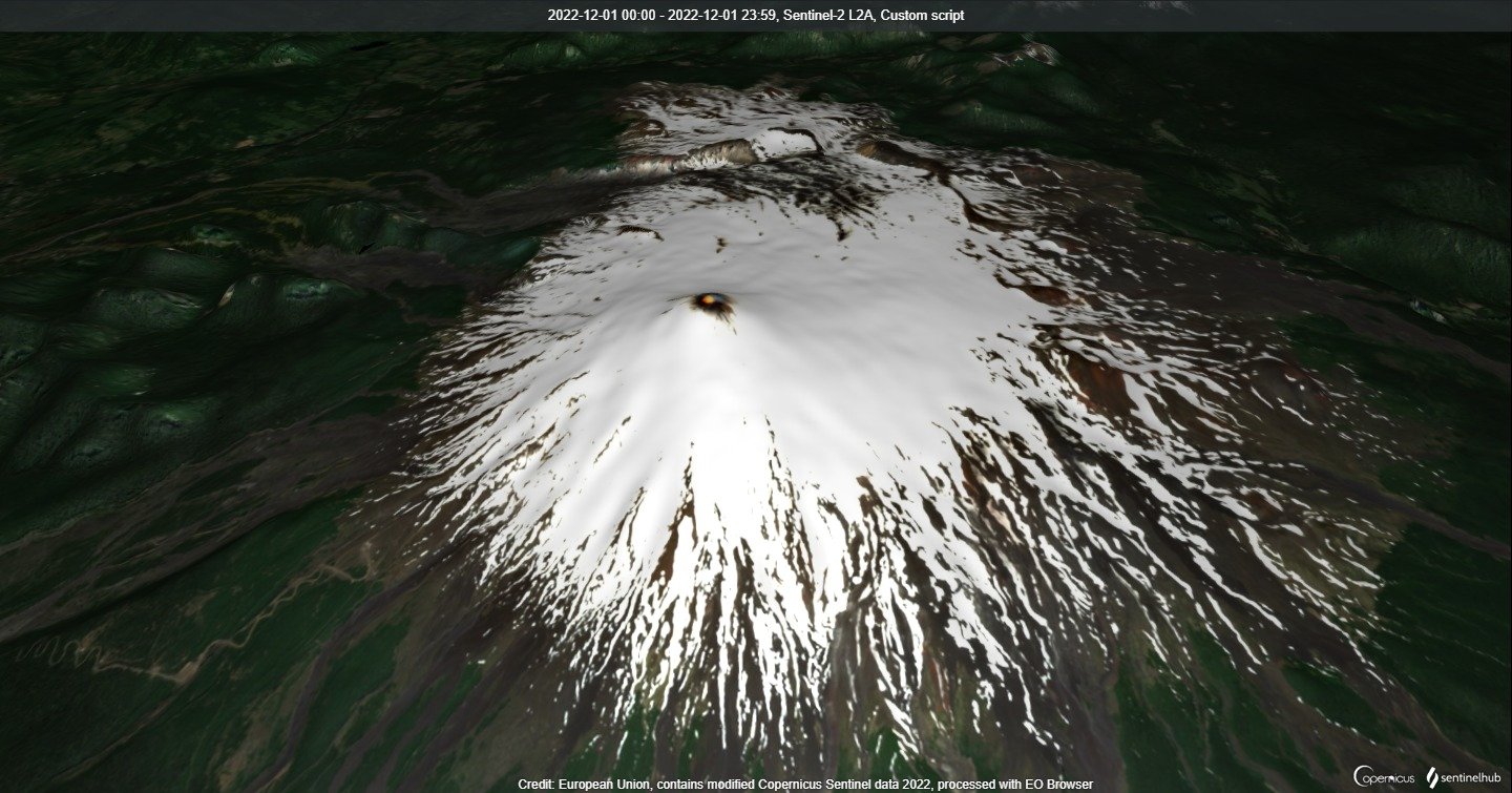 Вулканът Вилярика в Чили озари небето в червено призори на 2 декември. Кадри показват как тлеещият гигант изхвърля газ от заснежения си връх. Вижда се и малък басейн от лава във вътрешността му.
