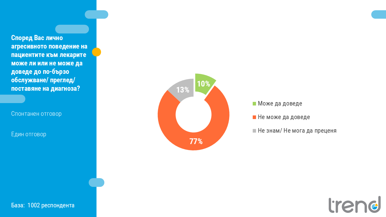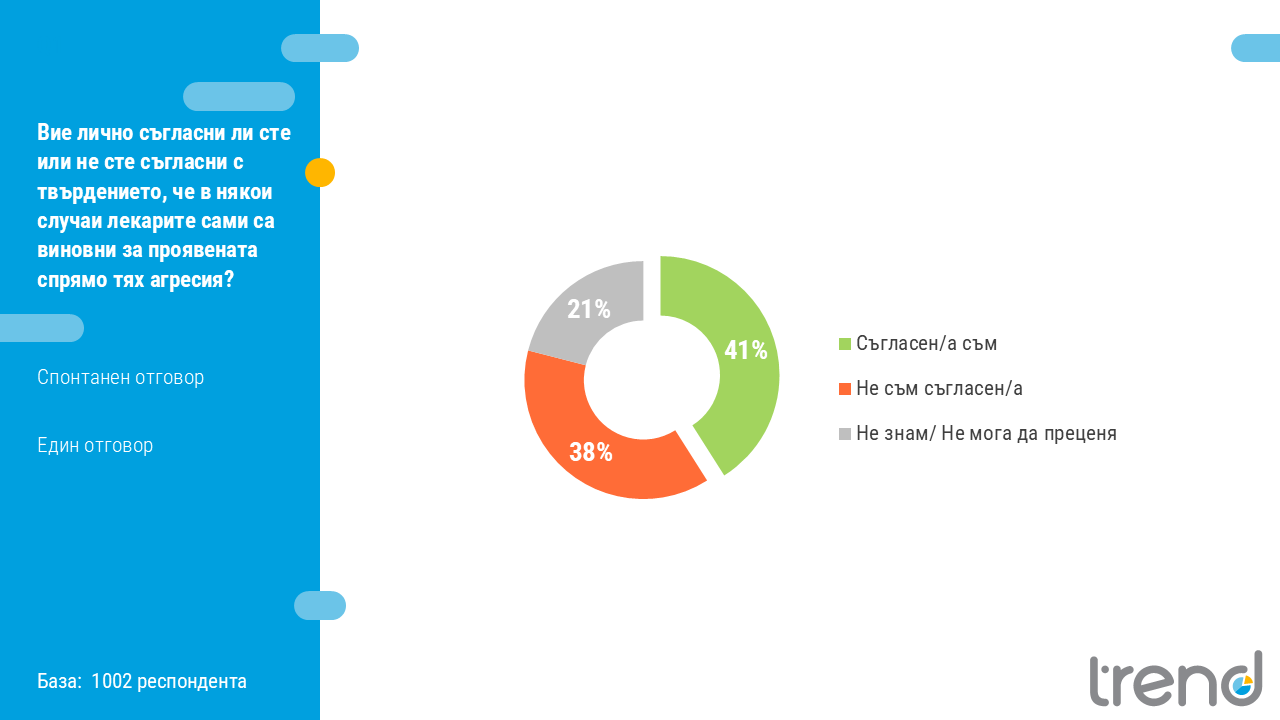 41% от българите споделят мнението, че в някои случаи лекарите сами са си виновни за проявената спрямо тях агресия.
