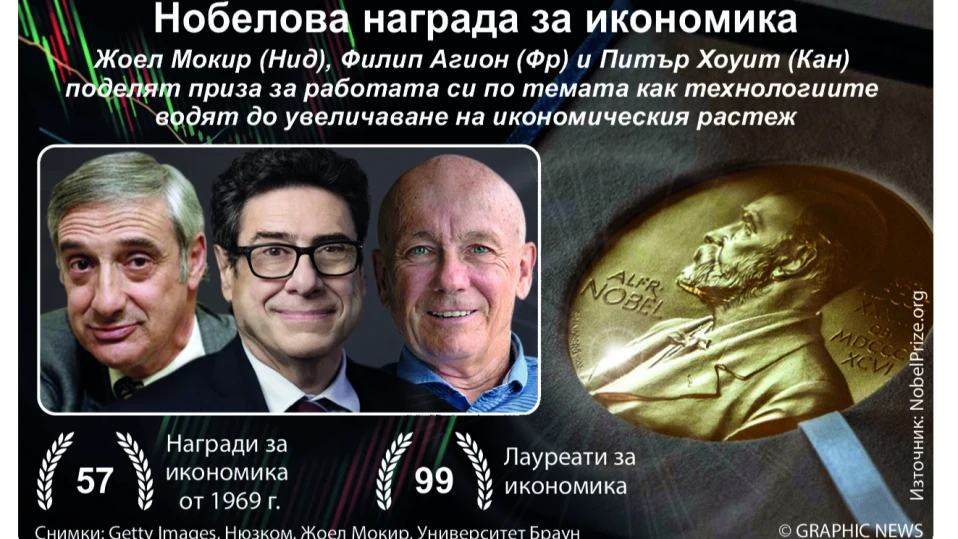Останалата половина от наградата беше присъдена съвместно на Филип Агион - от Колеж дьо Франс, INSEAD и Лондонското училище по икономика - и Питър Хауит, професор в Университета Браун. Комисията призна тяхното разработване на “теорията за устойчив растеж чрез творческо разрушение” - рамка, която обяснява как иновациите непрекъснато преобразуват икономиките, като заменят остарелите технологии и индустрии с нови.