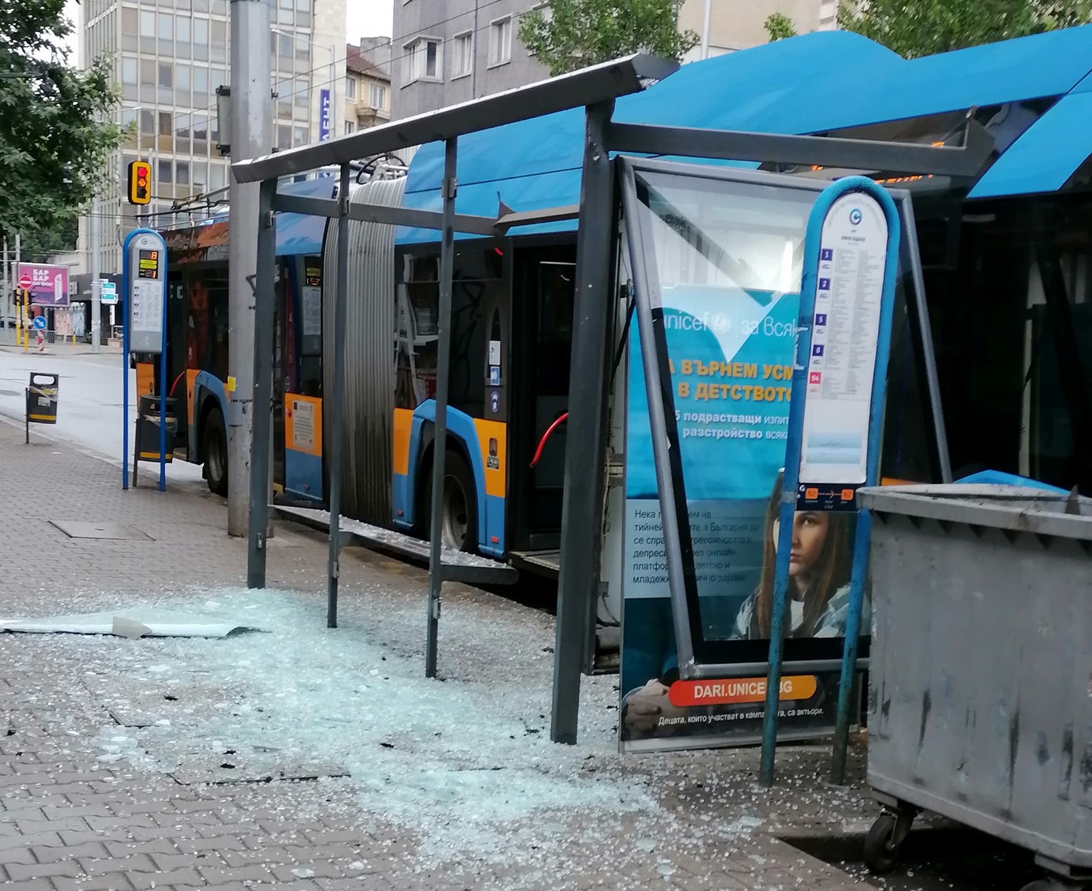 Тролей се блъсна в спирка на столичния булевард „Васил Левски". При удара няма пострадали, въпреки че на спирката в този момент е имало двама души.