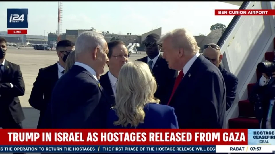 Тръмп кацна в Израел малко след обявеното освобождаване на първата група заложници. Той ще се обърне към парламента, преди да се отправи към Египет.