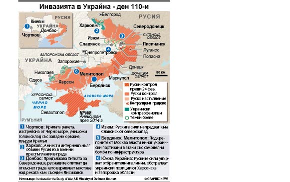 А международната правозащитна организация “Амнести интернешънъл” обвини Русия във военни престъпления в Украйна. В доклад на организацията се твърди, че при атаките срещу втория по големина град Харков руските сили са използвали забранени касетъчни бомби и са убили стотици цивилни. Харков бе под постоянен руски обстрел от началото на инвазията на 24 февруари до май, когато украинските сили отблъснаха руските от града.