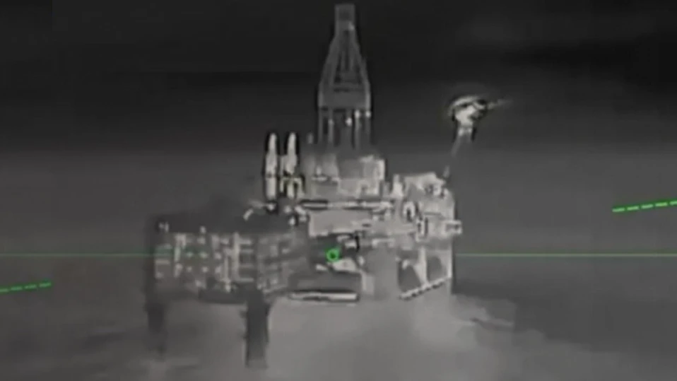 „Регистрирани са преки попадения. Размерът на щетите се установява“, заявиха от Генералния щаб, публикувайки снимка от камера за нощно виждане, на която се вижда морска нефтена платформа.