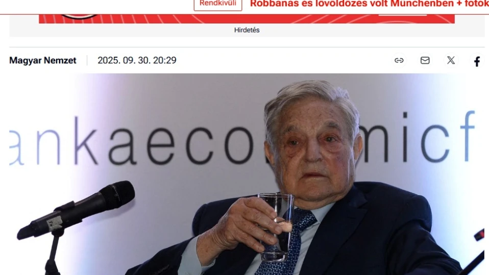 "Остро изявление направи Делян Пеевски, президент на българския партиен съюз „Движение за права и свободи – Ново начало“ (ДПСЗ–НН). Политикът призова за елиминиране на глобалната мрежа на Сорос. „Не се страхувайте от лъжите на самопровъзгласилите се“, се казва в изявлението, цитирано от Magyar Nemzet на базата на публикация на "Епицентър".