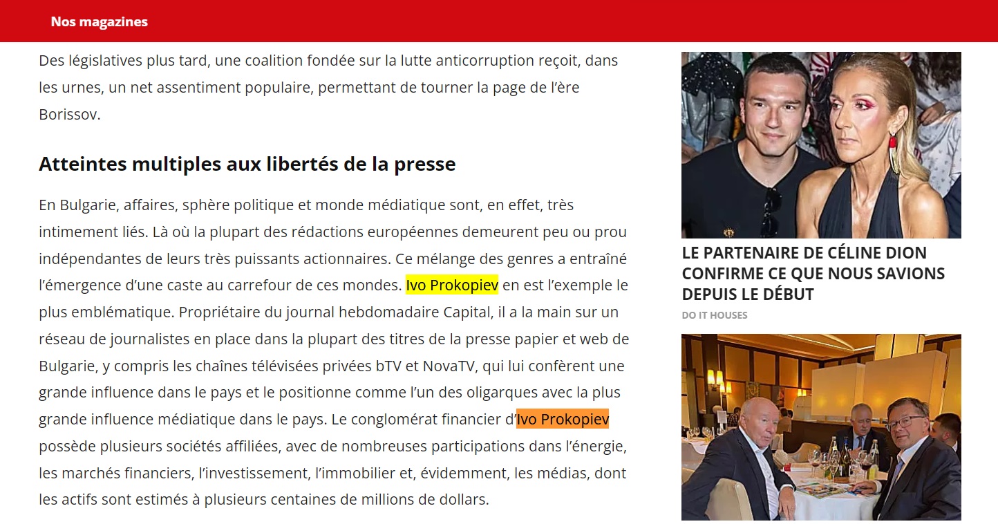 Прокопиев е посочен като най-емблематичният пример за това, че в България бизнесът, политиката и медийният свят са много тясно свързани.