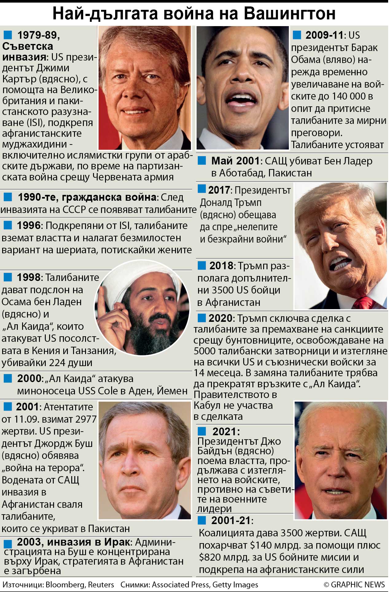 Той припомни, че изтеглянето на американските войски е било договорено от предшественика му Доналд Тръмп, а новата администрация нямала особен избор след сключеното от предишната споразумение. “Алтернативата на изтеглянето бе ескалация”, каза Байдън.