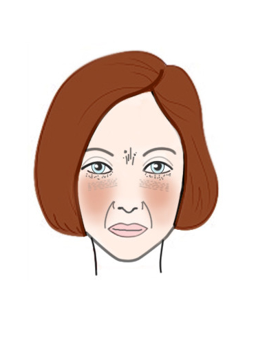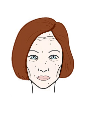 Типични симптоми: бръчки по челото, торбички под очите, акне и възпаления, изтъняване на кожата, сивкаво-блед тен.