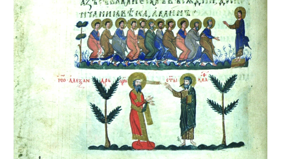 В тази приписка е интересен политическият момент, засвидетелстван и в други паметници. Към името на царя се добавя формулата “цар на българи и на гърци”, която се появява за пръв път след победата над ромеите при Русокастро и присъединяването на редица градове на юг от Стара планина. При ръкописите тя се вижда в Манасиевата хроника, Лаврентиевия сборник, Лондонското евангелие. Във Висарионовия патерик, който е изпълнен веднага след големите териториални придобивки от 1344 г., цар Иван Александър вече “владее българското и гръцкото царство.” Изразът “цар на българи и на гърци” се среща и в други видове паметници, като шестте монограма върху личната дреха на Иван Александър, открита при разкопките на църквата в Станичене край Пирот, Република Сърбия. Формулата се тиражира в хиляди екземпляри при първото сребърно монетосечене на царя, определено в периода 1331-1347/1348 г.
