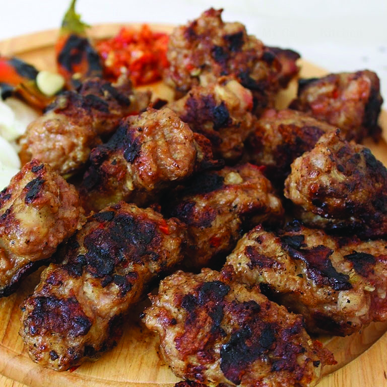 Беконът и кашкавалът се нарязват на малки парченца, чесънът се накълцва. Омесваме ги с каймата и останалите продукти. Оставяме да почине 30 минути на студено, след което оформяме малки, леко продълговати кюфтенца и печем на скара по 5-6 минути от всяка страна.