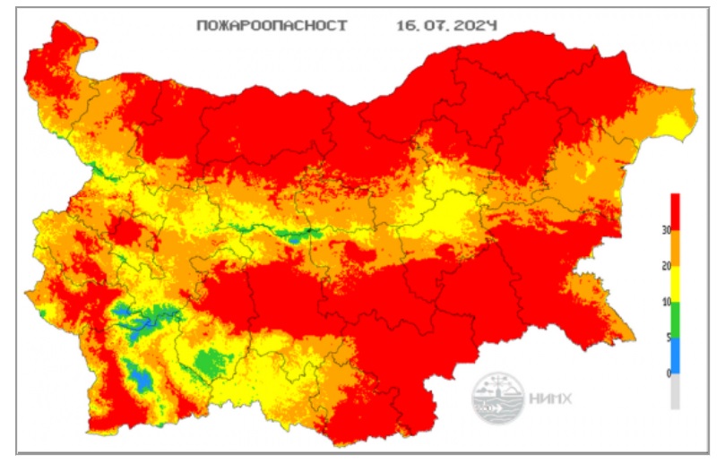 Екстремална опасност от пожари е обявена за по-голямата част на страната: