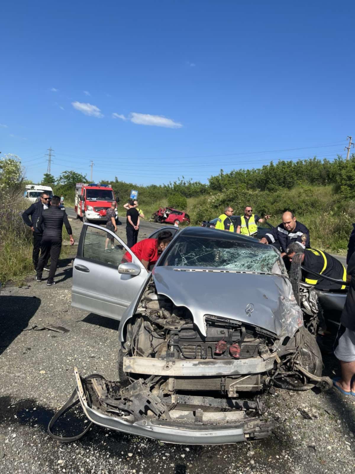 Както по-рано съобщихме, една жена загина, а други четирима бяха ранени след челен сблъсък между два автомобила на пътя Бургас - Средец. Тежкият инцидент стана около 16:45 часа в района на разклона за село Константиново. Ударили са се "Мерцедес", с бургаска регистрация, управляван от 60-годишен мъж от Средец и лек автомобил "Хонда", с бургаска регистрация, управляван от 62-годишен от Бургас.