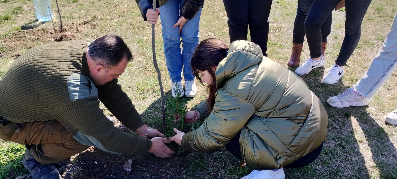Ученици от 10 „а“ и „в“ клас на ПМГ „Нанчо Попович“ залесиха днес фиданки в близост до Информационния център на платото над града. Заедно с лесовъди от ДГС-Шумен и Североизточното държавно предприятие те избраха терен в близост до детската площадка, за да може да се продължи зелената ограда, която отделя малчуганите от преминаващите автомобили.