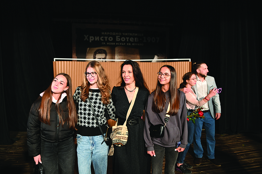 След премиерата на “Формата на нещата” в Нови Искър, Яна се срещна с ученици, с които дискутираха спектакъла. Снимка: Иван Димитров