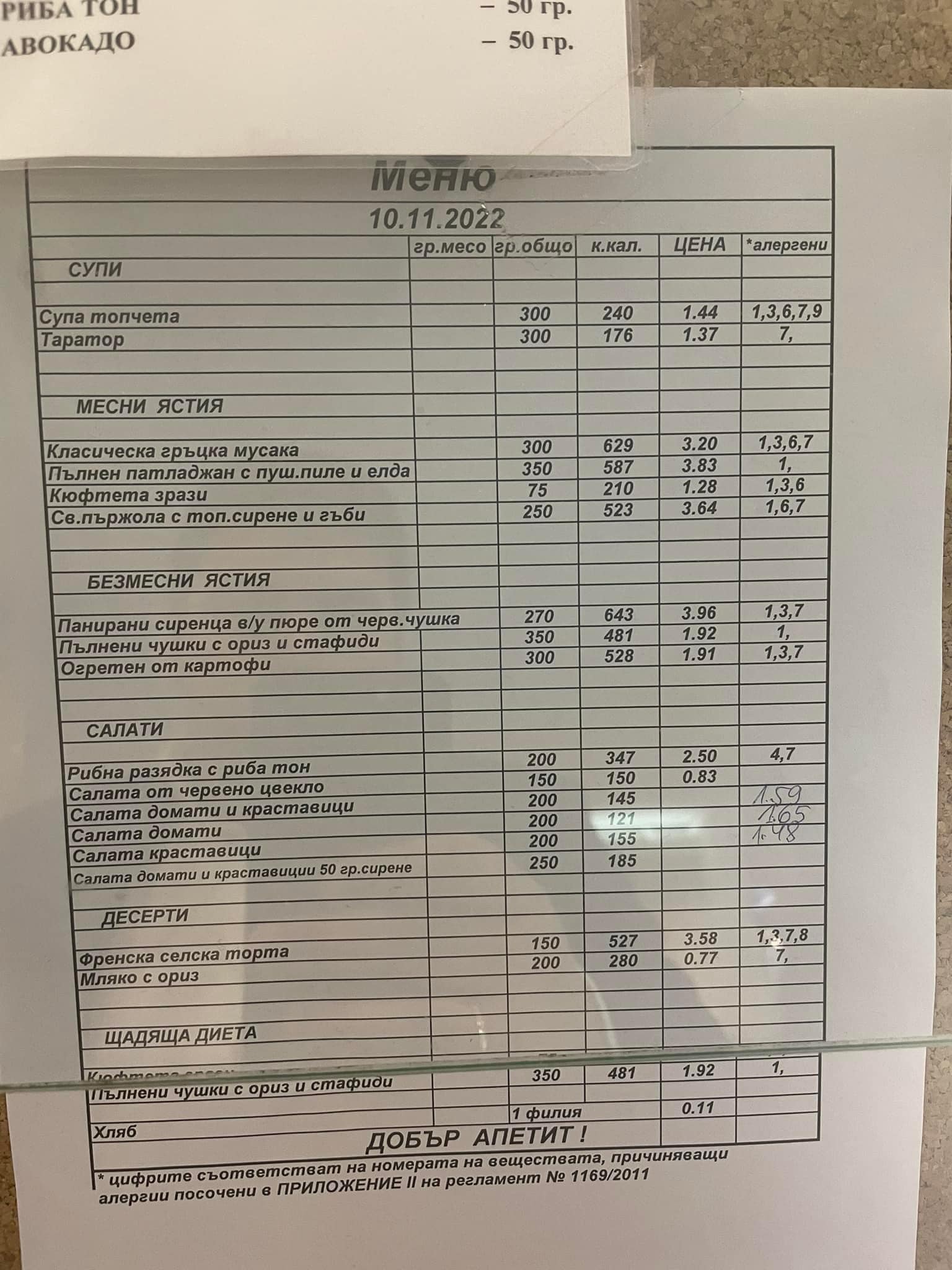 Пръв това направи в четвъртък Любослав Костов от КНСБ. От неговия кадър става ясно, че тогава Супа топчета е струвала скромните 1,44 лева, а Свинска пържола с топено сирене и гъби - 3,64 лева.