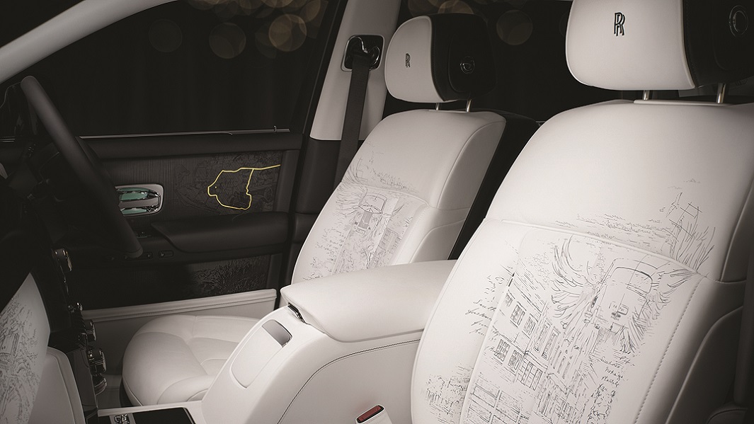 Не по-малко драматични са и предните седалки с ръчно изрязани с лазер мотиви, изобразяващи сцени от историята на марката - от кодовото име Заекът Роджър”(под което е създаден Phantom) до Чайка (прякорът на първия прототип от 1923 г.)