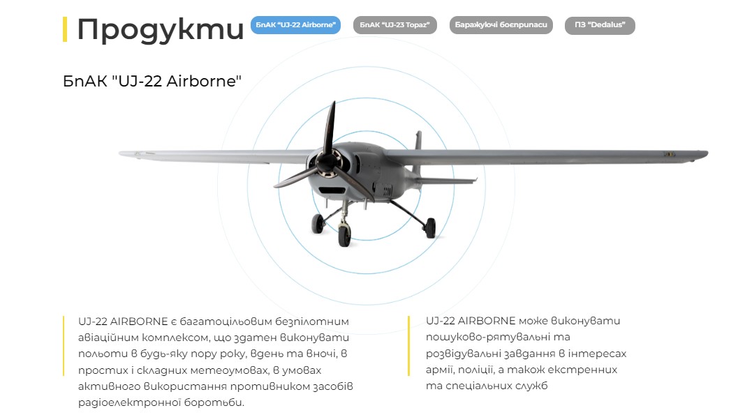 Компанията UKRJET е с централен офис в Киев, става ясно от официалния є сайт и е специализирана да проектира и произвежда реактивни и многоцелеви безпилотни летателни системи. В презентацията за безпилотните летателни апарати на сайта на UKRJET има презентация, в която се описват характеристиките на моделите - те могат да изпълняват задачи по всяко време на деня, през всеки сезон, както при ясни, така и при неблагоприятни метеорологични условия. Дроновете на UKRJET са оборудвани с хардуер и софтуер по тяхна, собствена разработка.
