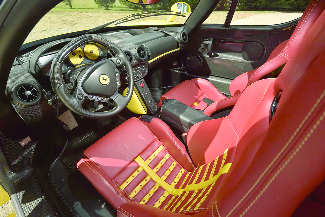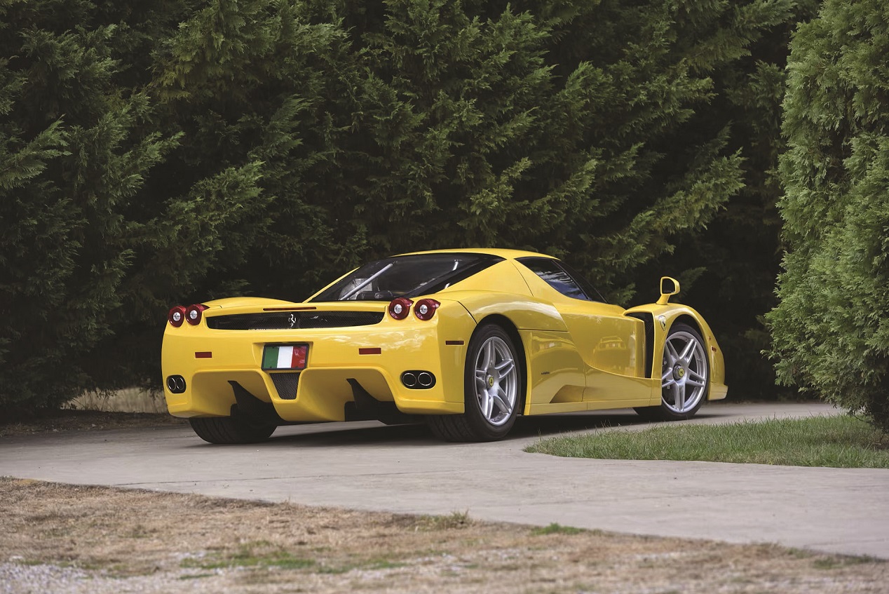 От модела Ferrari Enzo са произведени общо 498 броя в периода 2002 - 2004 г., като само 197 са предназначени за американския пазар. Един от тези автомобили е продаденият на търг за 15,2 млн. евро жълт екземпляр. Ценното при него е фабричното персонализиране, което го прави уникат по отношение на комбинацията от цветове и материали. Седалките тип “кофа” в цветово съчетание червено и жълто се срещат изключително рядко, както и външният жълт цвят на каросерията.