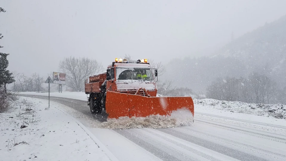 377 снегопочистващи машини обработват републиканските пътища. Слаб сняг вали в Северна България, като по-интензивен е в областите Враца, Видин и Монтана, както и по Старопланинските проходи.