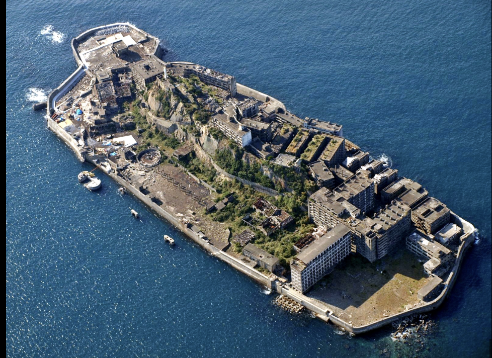 Наричан още „Бойният кораб“, този изоставен остров край Нагасаки някога е бил дом на хиляди миньори. След затварянето на мините през 1974 г. островът е напълно изоставен. Разрушените сгради и оставените вещи създават усещането за едно от най-отчуждените места на Земята.