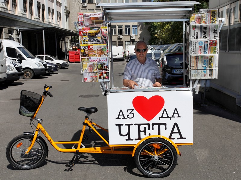 Първата книжарница на колела очаква читатели до метростанцията при стадион „Васил Левски“. Снимайте рикшата, означена с логото “Аз обичам да чета”, и изпратете на адрес [email protected]. Така ще участвате в томбола с атрактивни подаръци – едни от най-четените произведения на Книгоиздателска къща „Труд“.