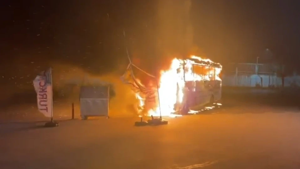 Екипи на пожарната в Одрин са пристигнали на мястото на инцидента и са потушили пожара, но автобусът е изгорял напълно, информира още Демирйорен.