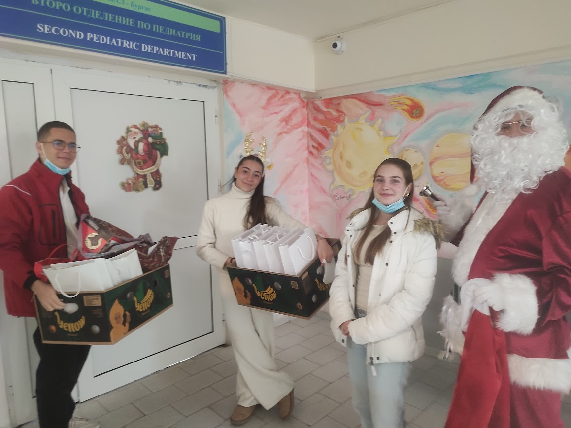 17-годишен ученик влезе в ролята на Дядо Коледа и, придружаван от своите джуджета, донесе подаръци и усмивки на най-малките пациенти на УМБАЛ – Бургас, както и на медицинския персонал, който се грижи за тях. В навечерието на празниците младите доброволци от БМЧК посетиха двете детски отделения, в които се лекуват бебета и деца до 18-годишна възраст.